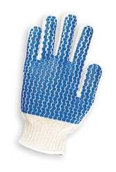 String Seamless Knit Glove, Size S, Reversible, Standard Weight, Blue PVC Blocks on Both Sides, Coated in the USA, Pair