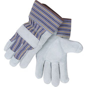 Black Stallion 6B Standard Split Cowhide Leather Palm Gloves - Short Cuff Mfg.# 6B Features: * Shoulder split cowhide - strap back basic leather palm work gloves * Basic cowhide leather * Leather knuckle strap on the back * Solid rubberized short cuff * Shirred elastic back for a snug fit Size: Large