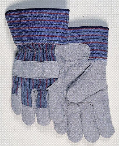 Work Glove - Leather - Gray - 3" Laminated Cuff - Red Striped Blue Canvas - Large -1 Pair Review