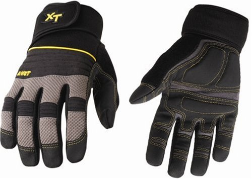 Working gloves need to be tough and durable, but comfortable to wear and use. Youngstown gloves are made of the highest quality, man made materials to create a glove that is form fit, lightweight, breathable, washable, comfortable and tough. They are designed to be the best working gloves youve ever owned. These heavy duty vibration reducing gloves can be an integral part of your everyday shop and garage life. Featuring 3.0 mm memory foam strategically placed throughout the palm and thumb along with a 360ยบ wrist wrap. These gloves are built from a water and oil resistance synthetic base layer, then double-stitched with bonded nylon thread for extended life. Other features include a terry cloth thumb pad for wiping moisture and raised double knuckle protection. These gloves offer unparalleled support and relieve tension throughout the arm.